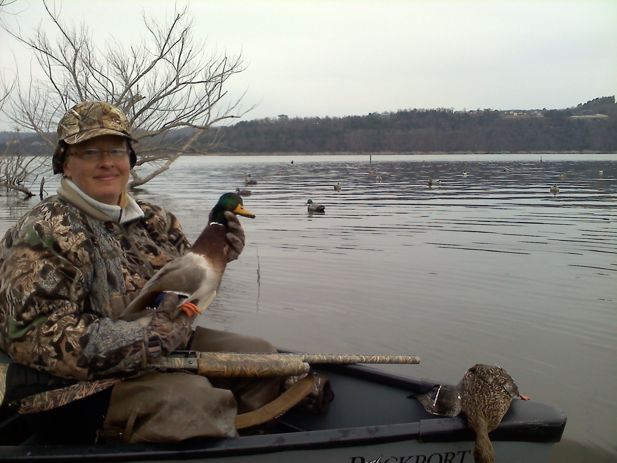 duckydoty Posted December 2, 2011 Posted December 2, 2011 My wife MonaChari and I got out this morning on Table Rock Lake for a little duck hunting. The main objective was for her to take some pictures of the greebs that have been hanging around. She would not put the gun down to grab the camera. She kept saying, I'm hunting right now every time the greebs came by. Lately when I've been hunting, I've been lucky to see 35 ducks a morning and that includes the ones at a distance. This morning we counted well over 150 and we even had a few come in to take a look. MonaChari bagged her first greenhead this morning A Little Rain Won't Hurt Them Fish.....They're Already Wet!! Visit my website at.. Ozark Trout Runners