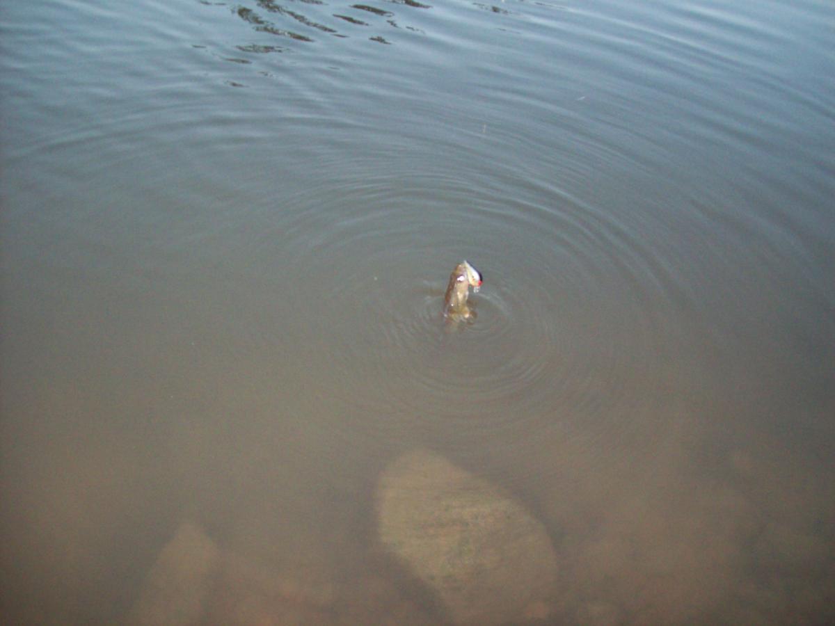 Haris122 Posted August 1, 2012 Posted August 1, 2012 I went out today for like 3 hours to Emmeneger Park in Kirkwood. When I got there, things seemed pretty promising. Lots of little wakes and bubbles around the shoreline. I wound up casting around a bit with a beetle spin on one rod, and one of the shallow diving bomber style crankbaits on the other one. Since the water was really low, it was quite a task to prevent things from snagging on some branches or rocks, or other stuff on the river bottom. Anyhow, I walked along the shore and kept casting around, and I got my first Walleye I ever caught (may have been a Sauger but not certain). It was a small skinny one, probably just 7". So it wasn't exactly strong enough to keep itself from just being reeled to shore. I got that one from a spot where the gravel bar protrudes further into the river, so deeper water/less snagging was the idea there. Anyways that got me pumped, since I didn't catch anything last few times I've been out. So I kept messing around that general area, and then got another bite on that crankbait. This fish was big enough to fight though. Didn't know what it was at first, I just saw the line going away from me fast, and I rushed to loosen the drag to not lose it. After a good 5 minutes and several runs I got it to the shore. Turned out to be a decent size Drum, 13-14" I'm guessing. That was pretty much it after I released that one. Also saw plenty of regular 1-2' Carp/Carp-like fish hanging out in shallow water, feeding. I was thinking of targeting them, but I figured I was short on time, so I better stick with this, once I caught the first one. Next time though, I will try to fool one of them if they're still active. By the way, apparently Kirkwood parks close directly around sunset as opposed to half hour past it, like County Parks do. So, just a heads up so you don't get a ticket, as I almost got one today .