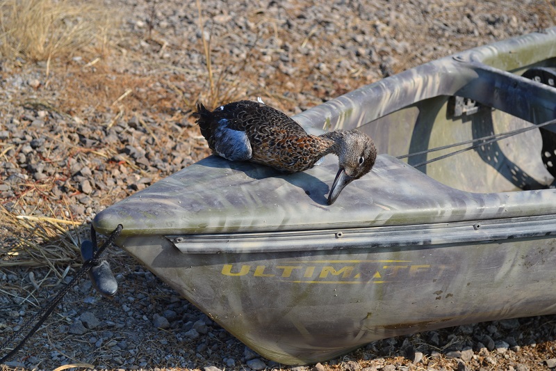 BilletHead Posted September 11, 2013 Author Posted September 11, 2013 He scores again! But I won't try this again in this place. OK finally went to where I had seen all the birds a couple of days before season. That day I was able to paddle the kayak all the way back to the honey hole. This place had been hit pretty hard by others. One word evaporation. Able to paddle this morning about 2/3 of the way. Should of turned around. I will be paying for my mistake. Had to pull part of the way. Pulling not too hard but walking in the mud was. Got to where I wanted to go and got set up, again glasses fogged up. Seen two rather large flocks of teal. Sky high one bunch going North and the other West. A flock of eight big ducks and numerous woodies. At least five other hunters besides me. One shot taken by all and it was me with one teal. A single came right in. You heard it here BilletHead only had to shoot one shell. A guy could of had a heyday on snipe, they were everywhere a few rail too. Only one skeeter tried to bite and one cotton picking horsefly got me on the ankle at the truck. When driving off you could hear the big black horseflies pinging off the truck as they attacked it. These two guys had to drag their rig more than I. I had to ask the young buck to help me load the kayak, like I said I over did it and will not try this again.At one time I watched these fellows trying to get to there set up. One was in the boat running the motor and the other was trying to drag him. Teal hunters are sometimes not too smart. That was me this morning and it fit me well, My bird and todays transportation to the marsh, BilletHead "We have met the enemy and it is us", Pogo If you compete with your fellow anglers, you become their competitor, If you help them you become their friend" Lefty Kreh " Never display your knowledge, you only share it" Lefty Kreh "Eat more bass and there will be more room for walleye to grow!" BilletHead " One thing in life is for sure. If you are careful you can straddle the barbed wire fence but make one mistake and you will be hurting" BilletHead P.S. "May your fences be short or hope you have long legs" BilletHead