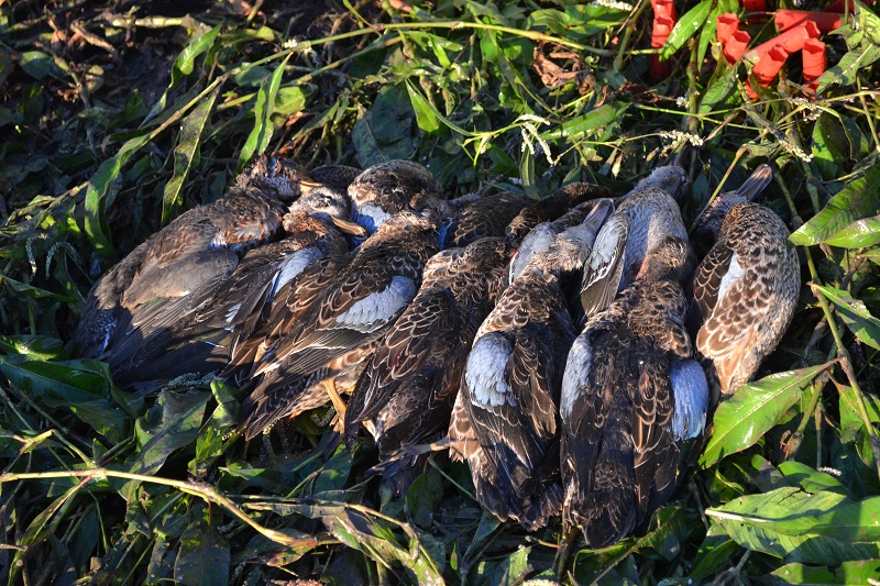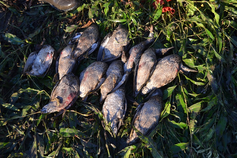 BilletHead Posted September 22, 2013 Posted September 22, 2013 Love it when a plan comes together, Up until this morning teal season has been pretty poor for us. Found an irrigation lake that was holding about a hundred teal. Found them Thursday afternoon, still there yesterday morning. Decided this might be a place to take the Mrs. One of those things. Darned if you do, darned if you don't. They may just fly off and never come back or do as we wanted and dump into the decoy set up. Nice full moon to see by. Could see to unload the kayak, decoys etc. in the dark. Loaded up I paddle across and the Mrs. walks to the far side our set up for the morning. I peer into the fog as I paddle to hear geese getting nervous. Soon I see geese and bookoos teal get up off the water into the early morning dark sky. As I set up the decoys the geese go silent in the distance flying off. Mrs. Billethead sets up the marsh seats in the smartweed. Then she says look at all the birds. Looking into the East I can see a rather large swarm going round and round. Almost set up they dump in about a hundred yards distant down the lake. Turn the mojo doves on staked out in the middle of the decoys. Load the guns sit down and look at the clock. 20 minutes to go. Soon they all spread out down the bank swimming towards us. Now we have them from 40 yards to 80 yards. Start counting, groups of ten, groups of twenty, multiply by the number of groups. CRUD 150 + teal with a big duck or two mixed in. 10 minutes to go and a crazy killdeer goes to squawking and up all the birds go way down range, too far out. Start over and watch the clock. Shooting time arrives and all the birds are feeding in the mud and muck still a long way off. Then a lone pintail circles and lands in front of us. Two lone teal drop behind him. Sorry Pat there on my side you can't shoot so I will and As I stand up they come off the water and I take them out. Then chaos erupts. All the teal from down lake go air born. I look at Pat and her eyes are big and round and she mutters a not so nice word as they begin to drop in on us by tens and twenties. We let loose, reload and shoot more. It's raining teal. Splat, splat, splat then hit the water and more are coming in. I said I got to get a couple of cripples and I hear her let another volley go . Then she says no more shooting. We got a dozen on the water. I had no idea but sure enough 12 dead teal. Oh how I wish this was the first weekend of teal season now that they have finally arrived. After a quick picture or two we pick up the decoys and as we leave there were several large flocks heading South. BilletHead "We have met the enemy and it is us", Pogo If you compete with your fellow anglers, you become their competitor, If you help them you become their friend" Lefty Kreh " Never display your knowledge, you only share it" Lefty Kreh "Eat more bass and there will be more room for walleye to grow!" BilletHead " One thing in life is for sure. If you are careful you can straddle the barbed wire fence but make one mistake and you will be hurting" BilletHead P.S. "May your fences be short or hope you have long legs" BilletHead