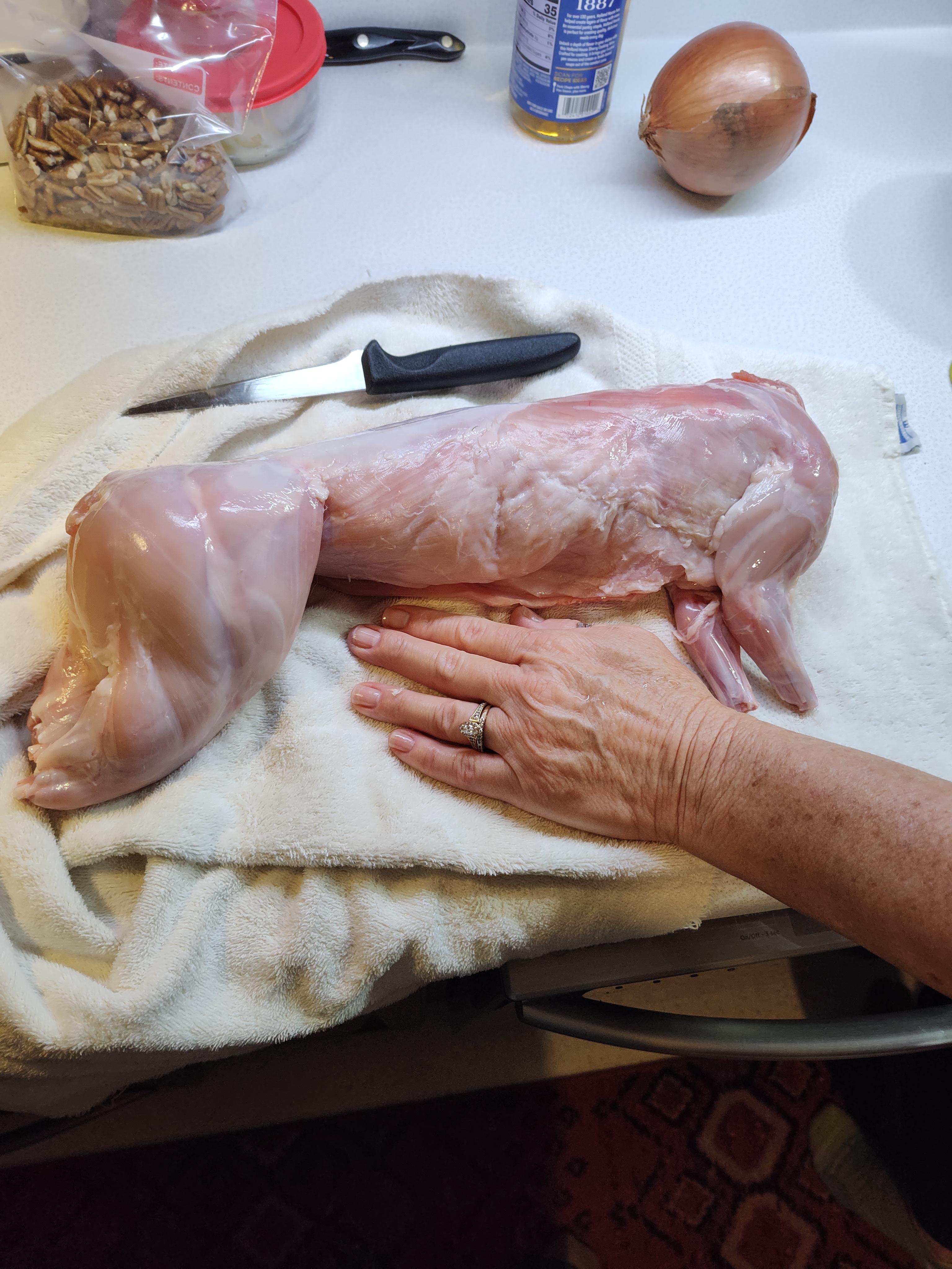 BilletHead Posted April 8 Posted April 8 The Easter Bunny was served for Easter, as in not served dinner but was the main course. We had a friend get in touch with us asking if we would like a meat rabbit. Sure we said. When we picked it up I was like woah it's a big one. I had young fryer in mind. How much oh nothing we butchered some and this was extra. Good folks and we sometimes just do for each other. I had restored a deep hammered Chicago foundry skillet and gave it to her last fall. Easter dinner we thought and we began to get it ready. This could of fed four at least. I'm telling you it was very meaty. Needed to be braised. She had told us that the one this sized they fixed was good but a bit tough. They are new at raising rabbits. We decided to do garlic rabbit but before always subbed three to four old tough squirrels. All browned and onions cooked down a couple bay leaves then into the oven for 2.5 hours. Oh baby this was off the charts in our opinion. VID_20260405_152825066.mp4 This afternoon is going to be the leftovers. ness, Greasy B, Ryan Miloshewski and 1 other 4 "We have met the enemy and it is us", Pogo If you compete with your fellow anglers, you become their competitor, If you help them you become their friend" Lefty Kreh " Never display your knowledge, you only share it" Lefty Kreh "Eat more bass and there will be more room for walleye to grow!" BilletHead " One thing in life is for sure. If you are careful you can straddle the barbed wire fence but make one mistake and you will be hurting" BilletHead P.S. "May your fences be short or hope you have long legs" BilletHead