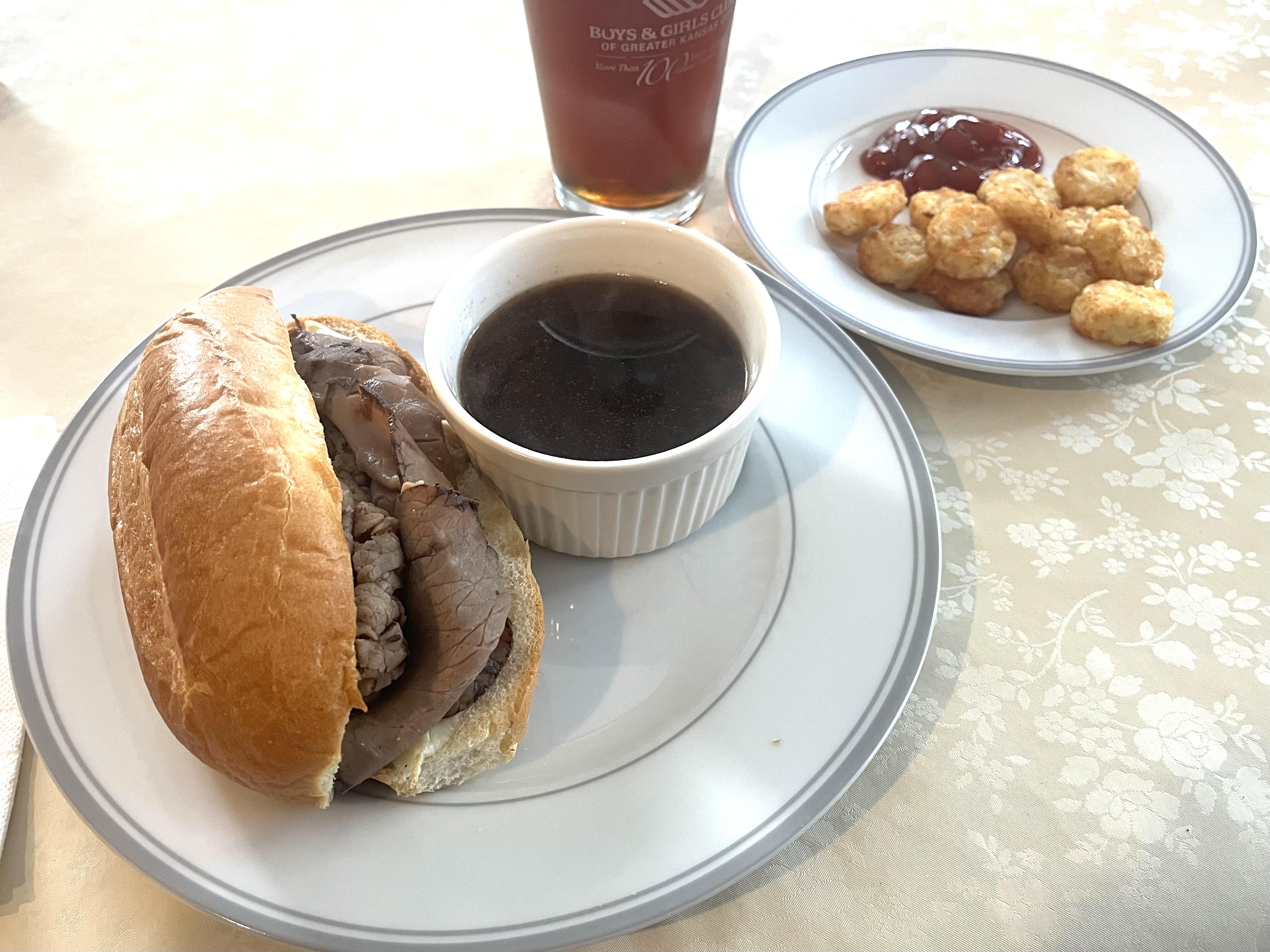 rps Posted April 11 Posted April 11 4 hours ago, ness said: Got this idea off'n the internet. French dip with canned consommé and French onion soup as the dip part, deli beef warmed in the soup. A nice roll sliced open and very lightly toasted with provolone. We'll do this again. 1 o'clock. Those are not pomme frite.Could we be looking at au jus and tots? ness 1