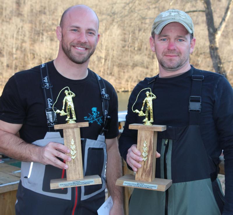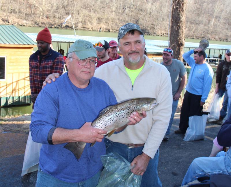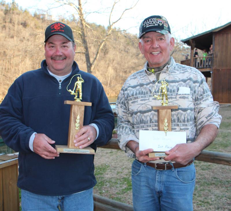 Root Admin Phil Lilley Posted February 28, 2016 Root Admin Posted February 28, 2016 Forty four teams competed in yesterday's contest and most said it was a tough day of fishing. It matched Friday's fishing day. But one thing happened that's never happened in my memory of any day on this lake, tournament or not -- we had 5 legal browns weighed in. While most anglers saw small rainbows after small rainbow, a few good rainbows were caught including a 2.20 pound rainbow caught by Cooper Cox. But the dink federal rainbows ruled the day, grabbing the lure before the big one got to it (that's the way I like to look at it). Conditions were ideal with the exception of a high sun. But surprisingly, the browns were active, especially the big ones! There were many stories of the "big one that got away", and those trout were all brown trout. But 5 were landed, 2 hitting or surpassing the 24-inch mark while the others were just over 20-inches. You could have heard a pin drop as I weighed the second large brown in. The first, caught by Gerry Dwiggins of St Charles, Mo., had already tipped the scales at 5.74-pounds. They were both male trout and both very similar in girth. The scale rested at a solid 6-pounds flat. Jim Rayfield had taken the first brown trout pot in 6 years of this contest. It paid $1,200. Jim's brown came on an 1/8th-ounce sculpin jig in the Short Creek area--plus it was his first fish of the day! He had a nice brown on the cast before and the hook pulled out on it. Next cast was the trophy. Gerry's brown also came on a marabou jig but his was brown, 1/8th-ounce and he caught it down below the Branson Landing. It was caught after lunch, yes in the middle of a sunny day. Many anglers think the lack of trout caught on lures is caused by the off color water Lake Taneycomo has had since the flood back in January. It won't be clearing any time soon seeing Table Rock's water is in the same shape. But it could also be explained by an old saying... "It's fishing, not catching." Those bigger trout don't eat every day. Leaderboard Cooper and Chris Cox, 4th place and biggest rainbow Merrick Meyers and Brad Beach, 3rd place Paul Crews and Jim Rayfield, 2nd place and biggest brown Jim Rayfield with his 6 pound brown Bruce Wucher and Gerry Dwiggins, 1st place.