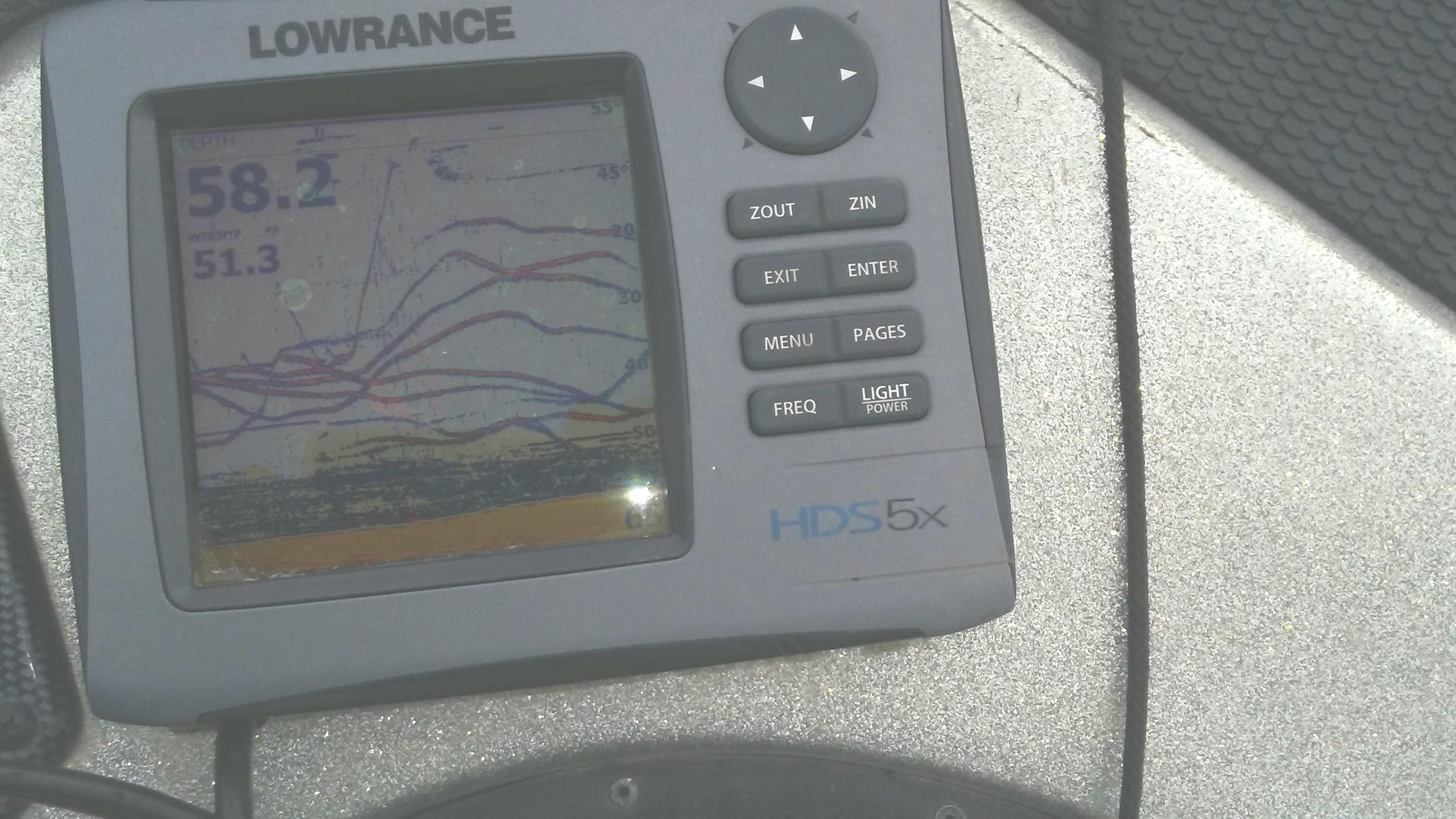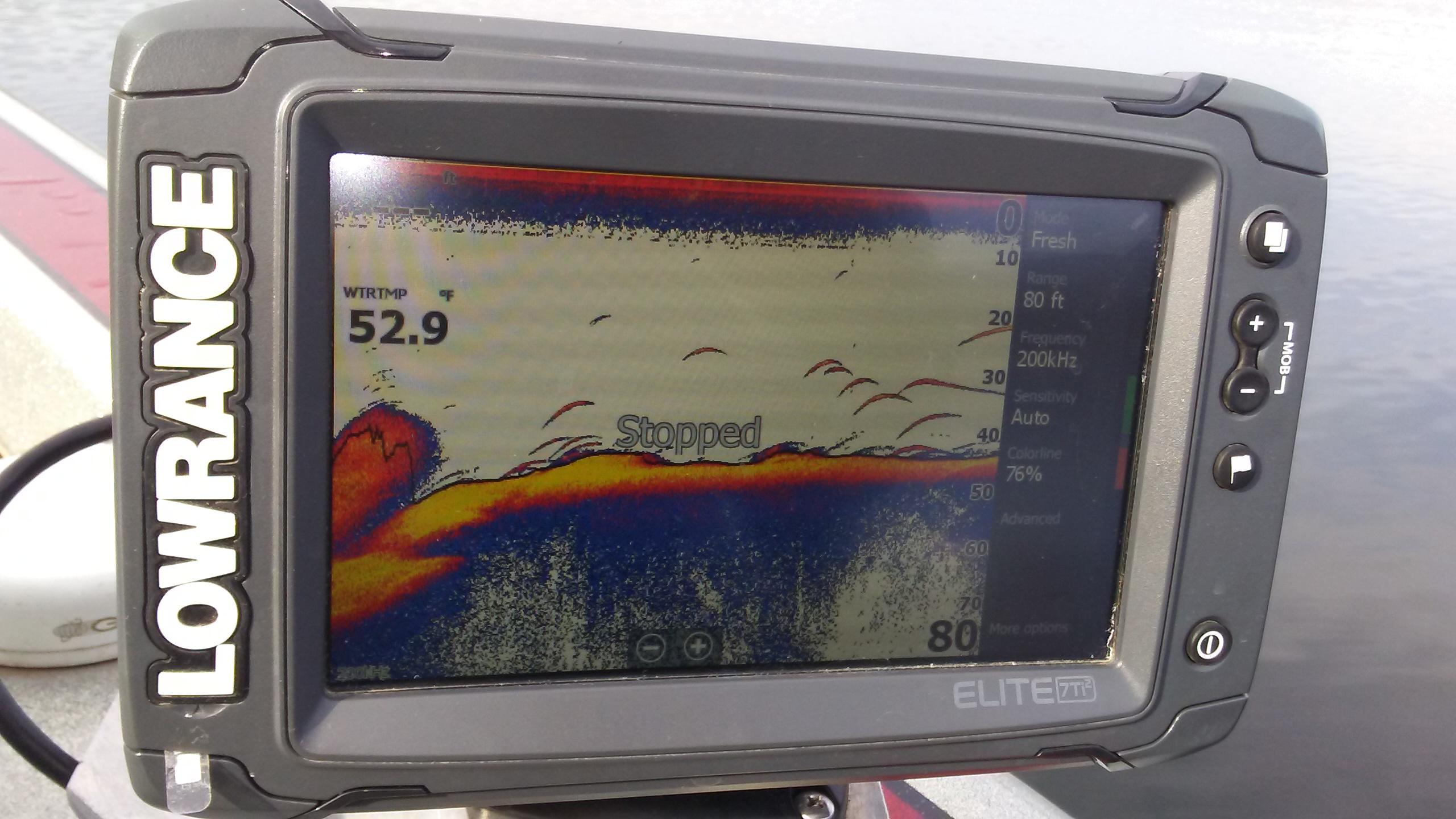 Dock-in-it Posted December 13, 2019 Author Posted December 13, 2019 The fishing was pretty good again this morning. I took a couple of graph pictures for folks new to deep fall/winter fishing. This first pic, I was seeing a lot of shad in deep water then the fish were on the edge of them in shallower water. Notice the deeper water and shad on the left side of screen. The second pic is after I put the trolling motor down. Ignore the WT on the 2nd pic, I had just put the trolling down and the temp sensor was reading a little colder than actual WT. WT is 51-52. snagged in outlet 3, big c, Quillback and 2 others 5
