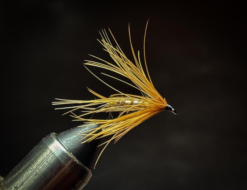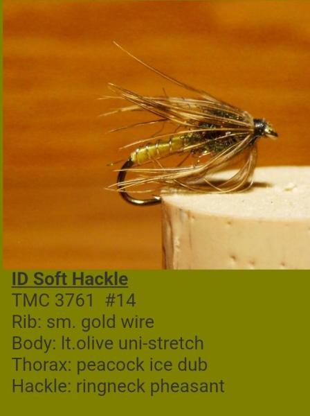 tjm Posted Wednesday at 06:26 PM Posted Wednesday at 06:26 PM I think it could be a wet fly, or wingless wet, or soft hackled fly or flymph, or spider; kinda depending on who is talking. They all mean more or less the same thing, although most patterns of the type use smaller hackle, in some the hackle is more flared, I don't see a great distinction of the patterns and the variations are endless. This pattern is said to imitate a dragonfly nymph, but I think of this type fly as representing small baitfish or crawdads as much as being representative of nymphs. But that is kinda in whether they are fished on a slack line or a taut line. Dead drifted or fished as a semi dry fly in the film, they would represent a nymph or emerging insect, but on a taut line either swung or retrieved, as most fish them they seem more fish like than insect like. Tied on #18-#14 they are great trout flies, on larger hooks bass and chain pickerel like them.Soft hackles have been my go to flies for about 50 years . Flysmallie 1