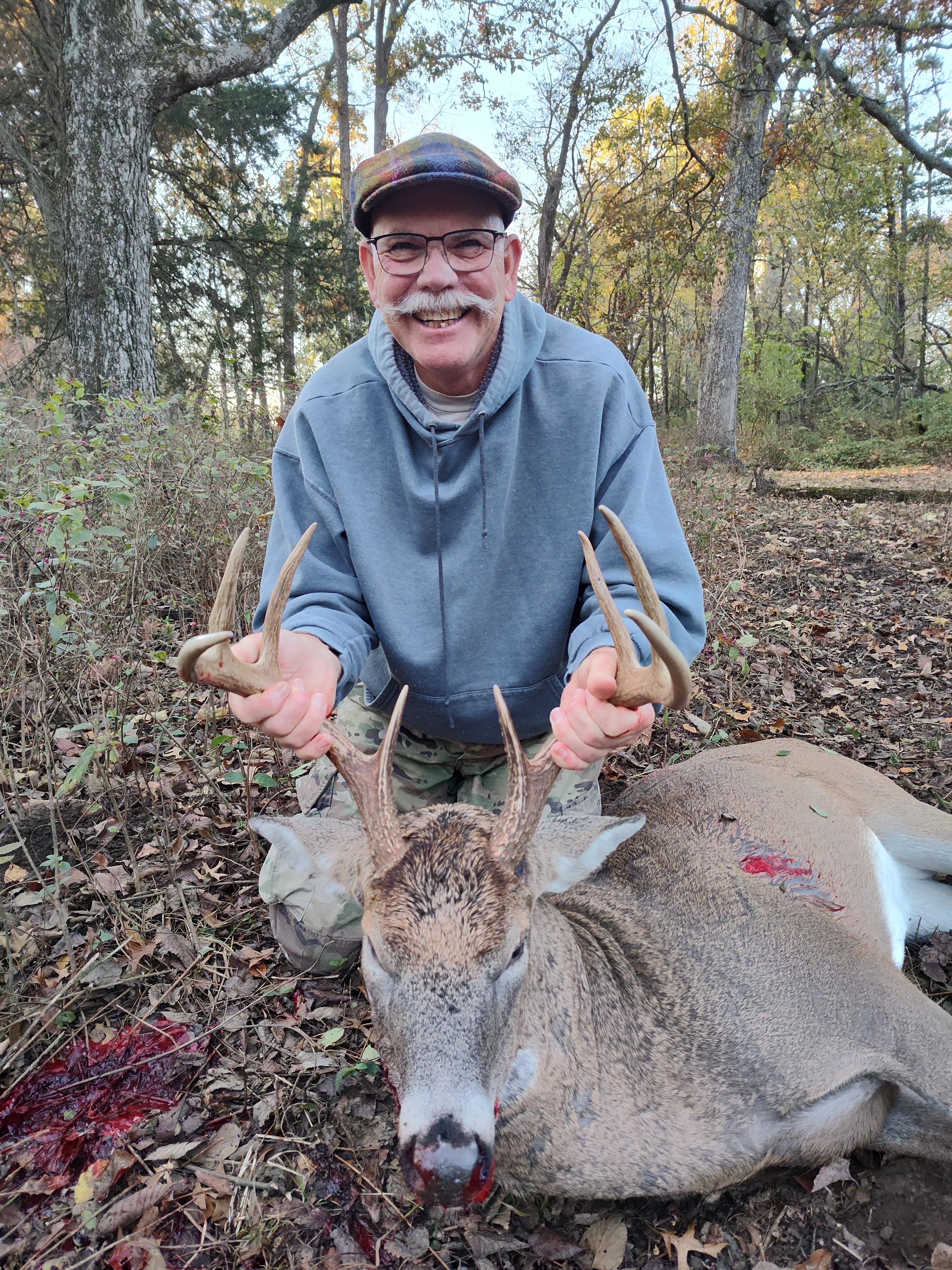 Terrierman Posted 1 hour ago Posted 1 hour ago 3 hours ago, BilletHead said: My heart just has not been into it the last three years. I still buy a archery license and go. Never been a trophy hunter going for meat. In the 48 years bowhunting I have taken some good ones but never took it to the limit hunters do now. I finally got the urge and Pat and I did some trail prepping and even put up another stand yesterday. I was going to start this evening but got short stopped. We got up early and ate breakfast and had coffee. I took my plate to the kitchen and Pat said the buck she seen yesterday was behind the house again. She says get your crossbow cocked. I laughed watching him nose into the air traveling with a purpose looking for a girlfriend. Deer have been going nuts here for over a week. No way he's going to stop. Well he did taking a break eating locust pods. It's like candy for deer. I got the bow and cranked it up, put the arrow on the rail. Window open I pushed the chair out of the way while the buck munched away. I guessed 35 yards a let one fly. In an instant I seen it hit the spot. Off he bolted. We started laughing out loud until tears rolled. This is my first one out the window, Pat shot a doe out the bedroom window that was eating crabapples once. We had not even been outside yet. Shoes and boots on. A very short blood trail like in less than 40 yards. It even died in the trail we mowed. LoL, My blind 🤣. Where the deer was, Where it ended up, Getting ready to grill the tenderloins. Dang it I was hoping you'd bring them by the place. BilletHead 1