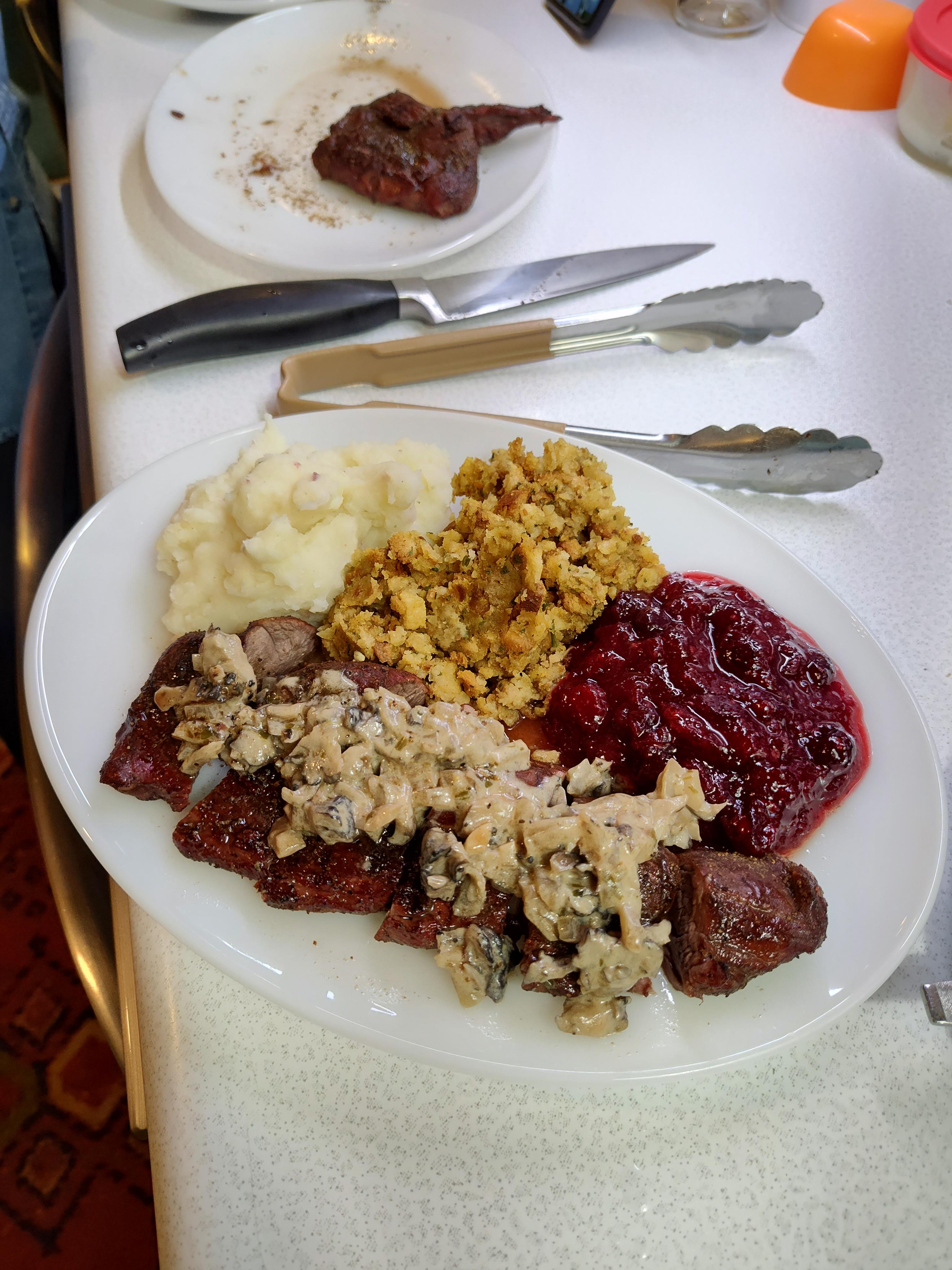 BilletHead Posted 1 hour ago Author Posted 1 hour ago Ahhh but we aren't done yet. Eating those tenderloins on the back porch with the gut pile in the background. Pat made some mushroom sauce from some of the hen of the woods we found. Life really is good in BilletHeadVille. ness 1 "We have met the enemy and it is us", Pogo If you compete with your fellow anglers, you become their competitor, If you help them you become their friend" Lefty Kreh " Never display your knowledge, you only share it" Lefty Kreh "Eat more bass and there will be more room for walleye to grow!" BilletHead " One thing in life is for sure. If you are careful you can straddle the barbed wire fence but make one mistake and you will be hurting" BilletHead P.S. "May your fences be short or hope you have long legs" BilletHead