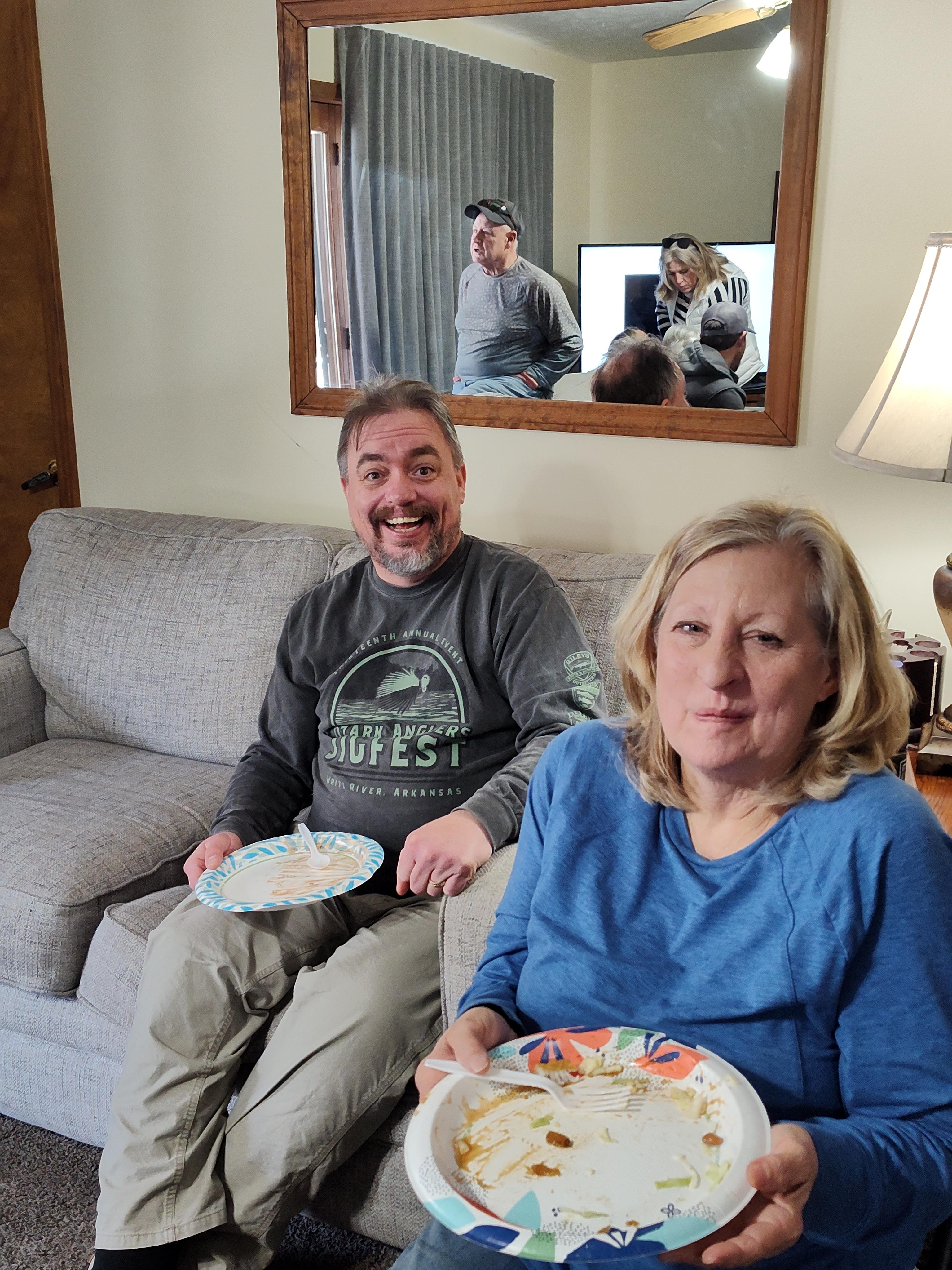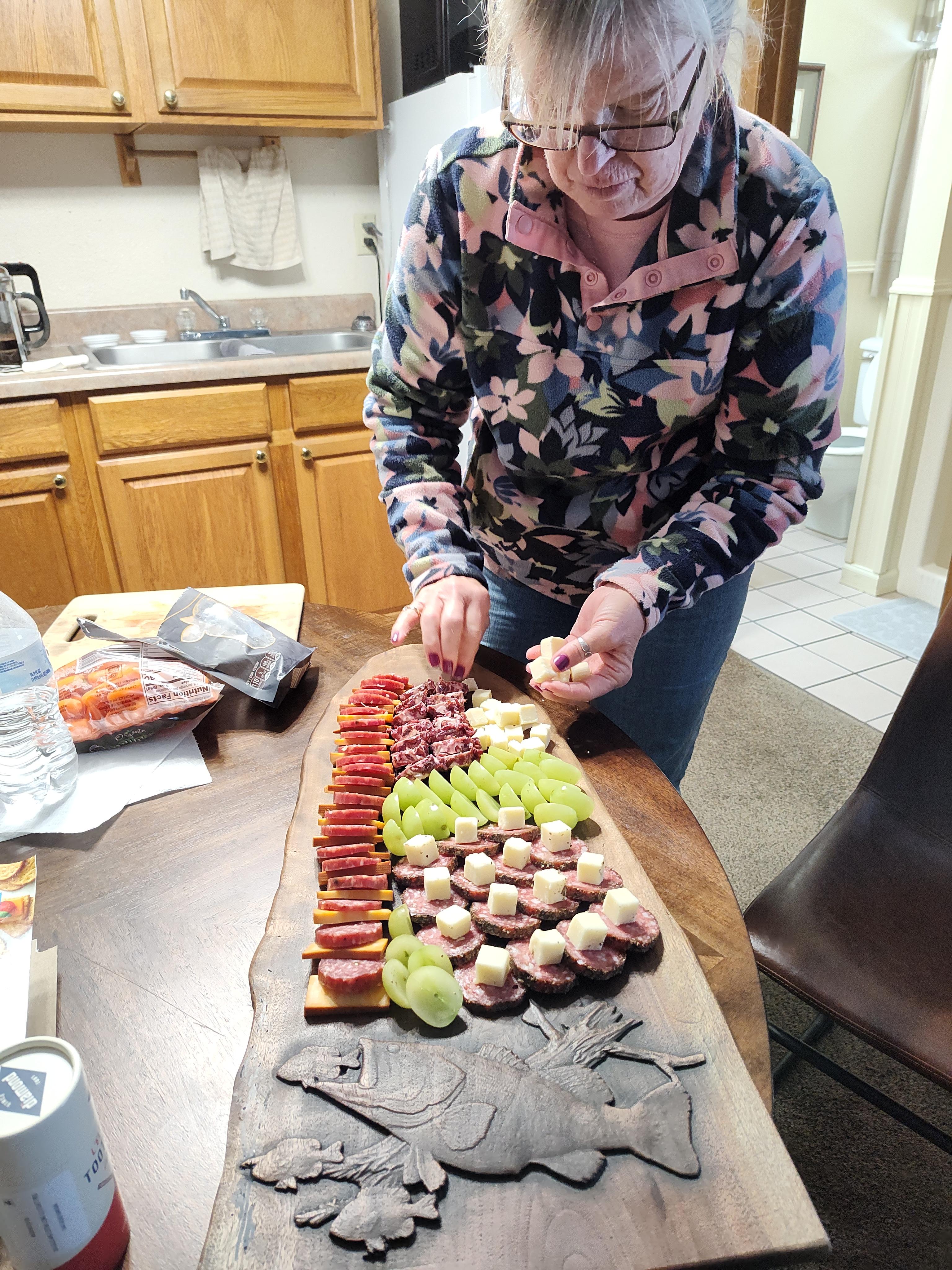 BilletHead Posted 23 hours ago Posted 23 hours ago Like in all OAF official and unofficial fests getting all that you want to eat is not a problem. Thursday evening for the ones there we had Milo chili, big hands Rob and little Hands Rob's wife Kathy or was it Kelly? 😆 Ask Milo about that deal. They brought lasagna. Pat and I contributed braised venison in red wine with buns and BBQ sauce. Desserts also were brought! That same evening there was some jousting on the next mornings breakfast. A choice between package biscuits and gravy or Real homemade biscuits and gravy. That's when Pat made a call. You see we are not late night which means some of these people all nighters. Biscuits and gravy will be served at 7am. Pat got with The program and left our room at 6:45 with me shortly after to start cooking the sausage. I'm not sure if it was the noise or the smell but soon almost all we working into the unit 15 kitchen to fill plates as Rob scrambled some eggs. So we seemed to be one person short that morning and that was Milo. He claimed later he was working remote. I have another theroy but draw your own conclusions people. From then on its a blur for meals on Friday. Kinda a free for all of things brought and shared for that day. Soup, leftover lasagna etc,etc. Duane gave us one of his charcuterie boards and with his input Pat assembled it. Note he told Pat as she cut the giant grapes in half to carve them like swans. Well that didn't happen and I called them turtles. Daryk Campbell Sr, Quillback, grizwilson and 3 others 6 "We have met the enemy and it is us", Pogo If you compete with your fellow anglers, you become their competitor, If you help them you become their friend" Lefty Kreh " Never display your knowledge, you only share it" Lefty Kreh "Eat more bass and there will be more room for walleye to grow!" BilletHead " One thing in life is for sure. If you are careful you can straddle the barbed wire fence but make one mistake and you will be hurting" BilletHead P.S. "May your fences be short or hope you have long legs" BilletHead