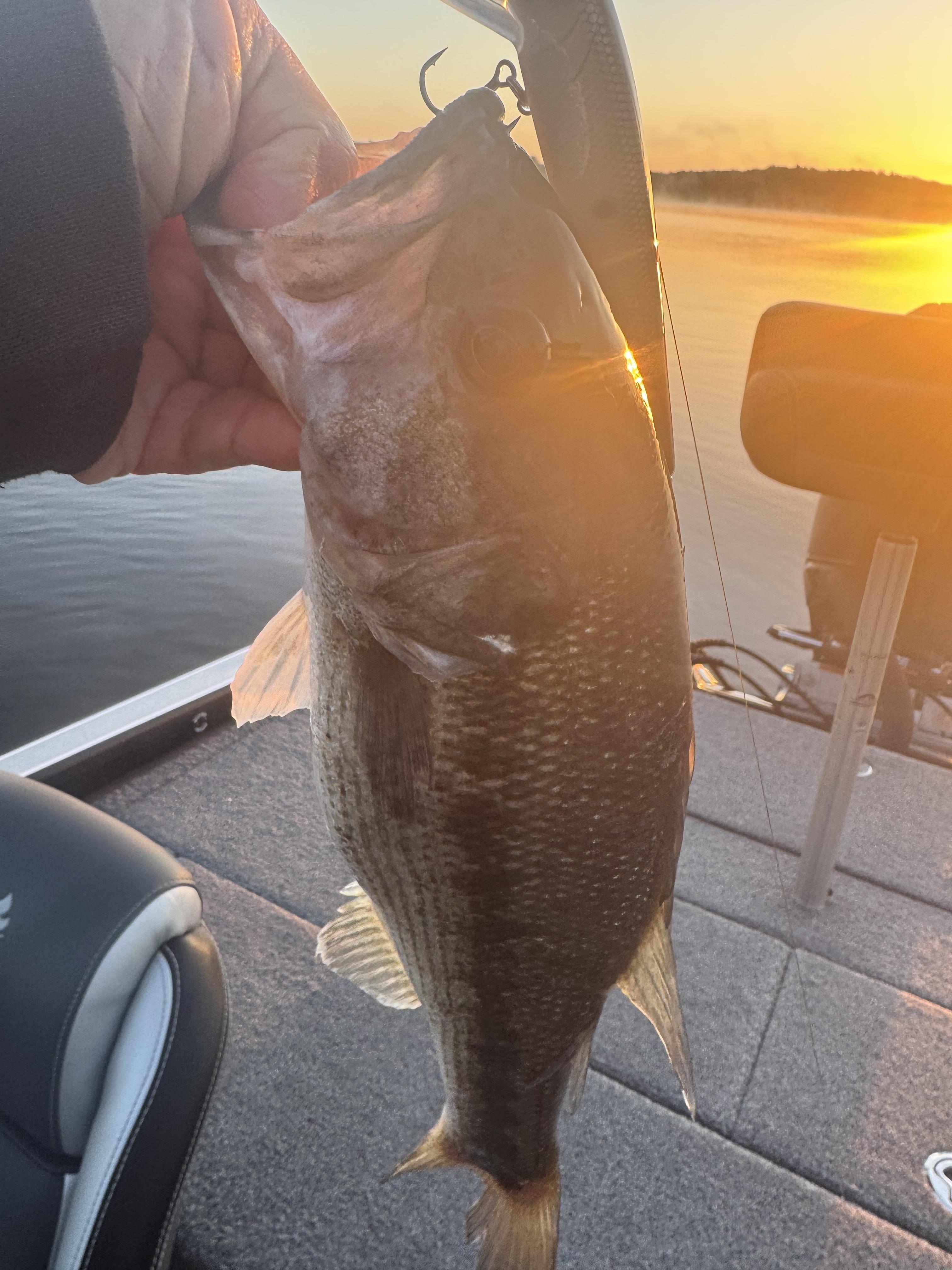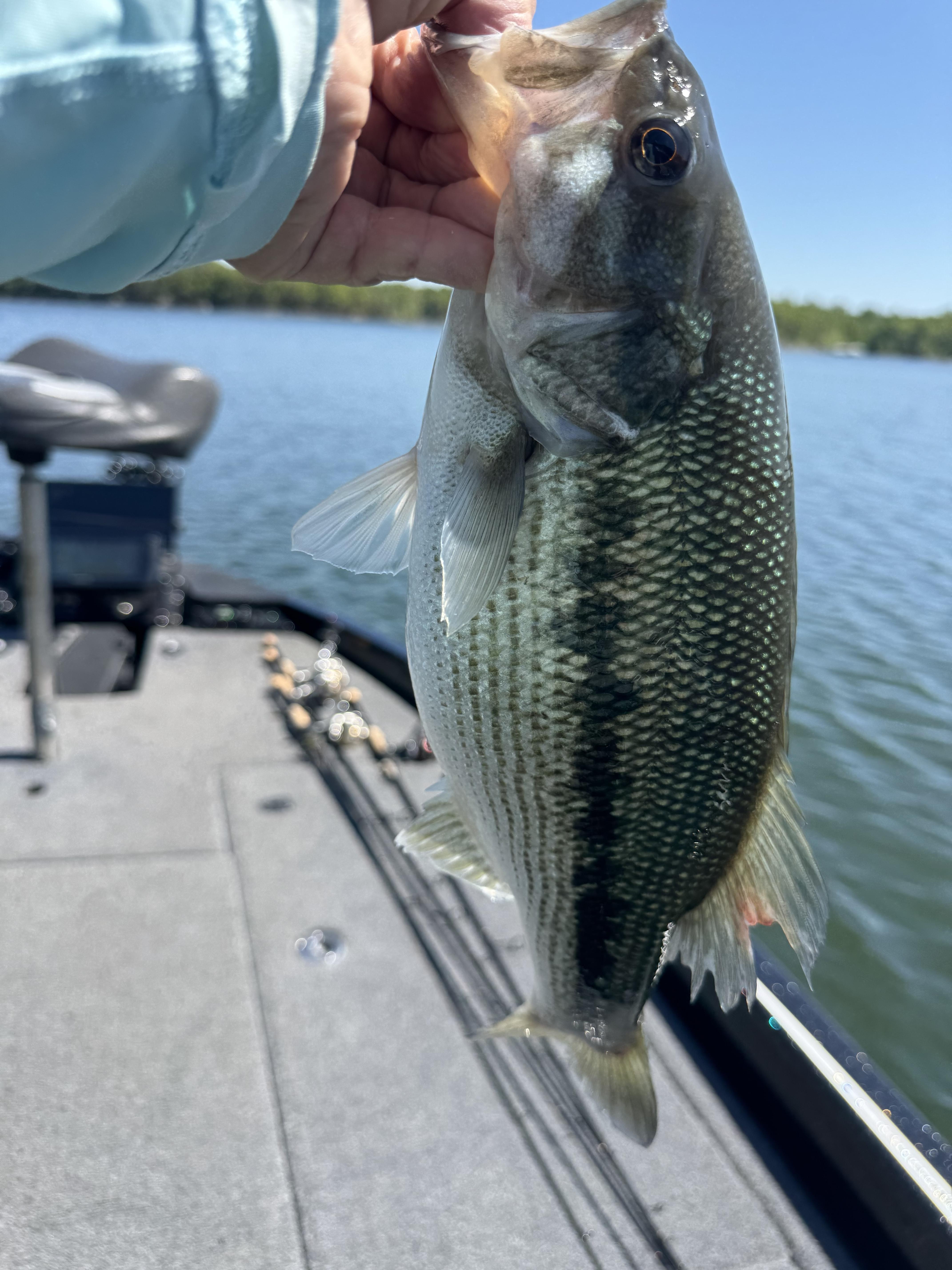 Bill Babler Posted 11 hours ago Posted 11 hours ago Haven’t fished up the White out of SK all year. I did this morning starting at 6:30 to a surface temp of 65 degrees. Saw fish chasing at the mouth of the Kings and stopped. First topwater fish of the year on the surge Shad. Caught 8 with one keep. Really it was tough and I junk fished all morning. Jig, floating worm, top water, swimbait, senko and a C-rig. Moss seems to be gone except if you hit wood. Had 15 keepers, but biggest was a 17” LM I caught on a floating worm. Nothing had spawned all full of eggs. I’m sure the LM was up there to do the deed. Lots of fish on wood out to 18’ and also 2’. I got super Lucky. Scoped a pile in 20’ that was totally loaded and there was a shad school about 20’ between me and the pile. I swam a GP 2.8 over the pile and hooked up. That fish brought at least 25 more fish out of that tree and right into the shad school. It was totally crazy. It was chaos, and I couldn’t get them unhooked fast enough. I just busted out laughing. That’s the first time that has ever happened to me. When your fishing that type of structure you may get 1-2-3 but if they come to the boat or you lose one your done. I got so friggin lucky. I need to take pictures if this stuff, but when they’re biting it’s hard not to do the catching. I had maybe 25 in a 6 hr. Morning, and I didn’t earn most of them. edwin, snagged in outlet 3, Targa98 and 4 others 7 http://whiteriveroutfitters.com http://whiteriverlodgebb.com